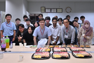 | 10名の新入生が配属となりましたので歓迎会を実施しました. 当初は屋外バーベキューを予定していましたが, 雨天のため屋内での焼肉パーティとなりました. |